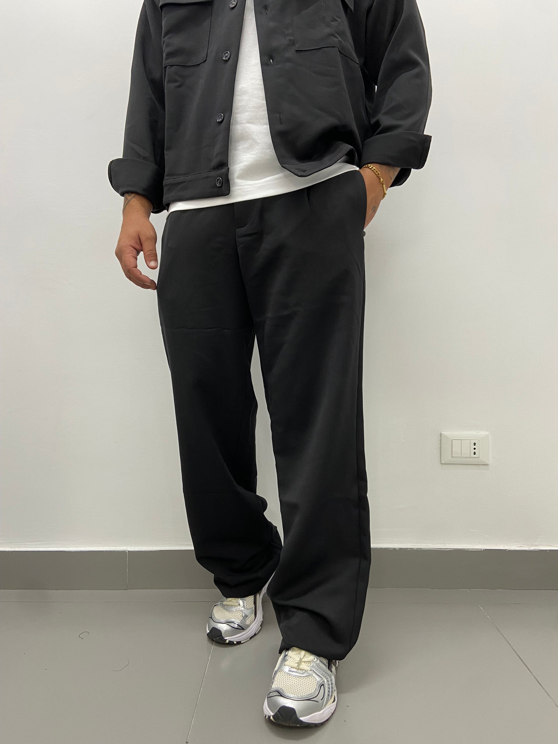 Coordinato con camicia crop e pantalone fondo ampio